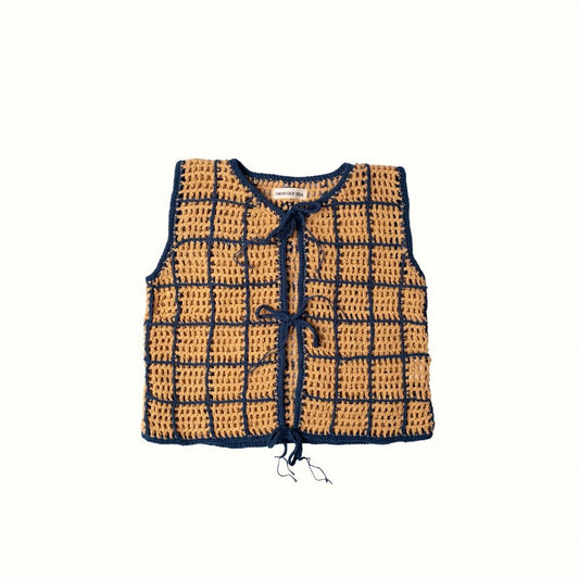 ALOHA CHECKER CROCHET VEST - BEIGE