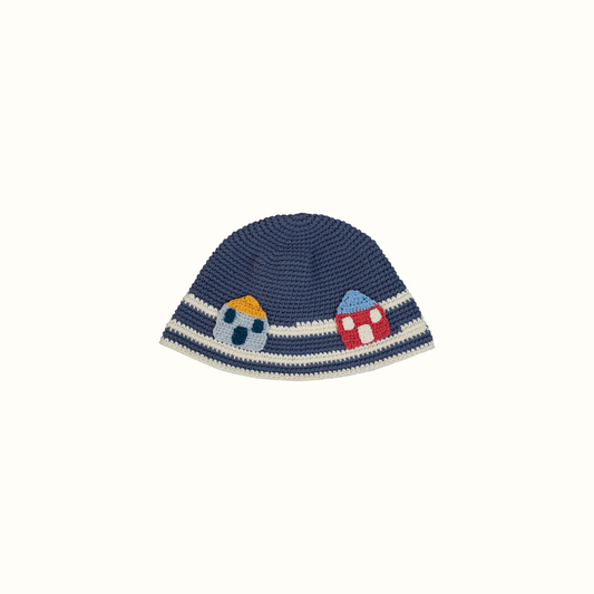 MARLO HOUSE APPLIQUE CROCHET HAT HANDMADE - INDIGO