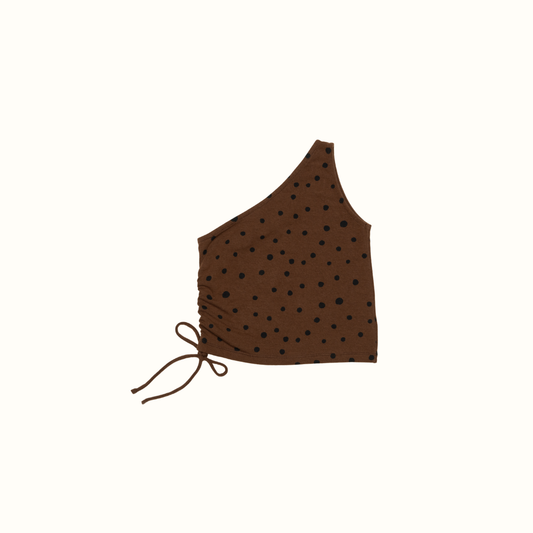 LILY ONE SHOULDER TOP DOT BROWN
