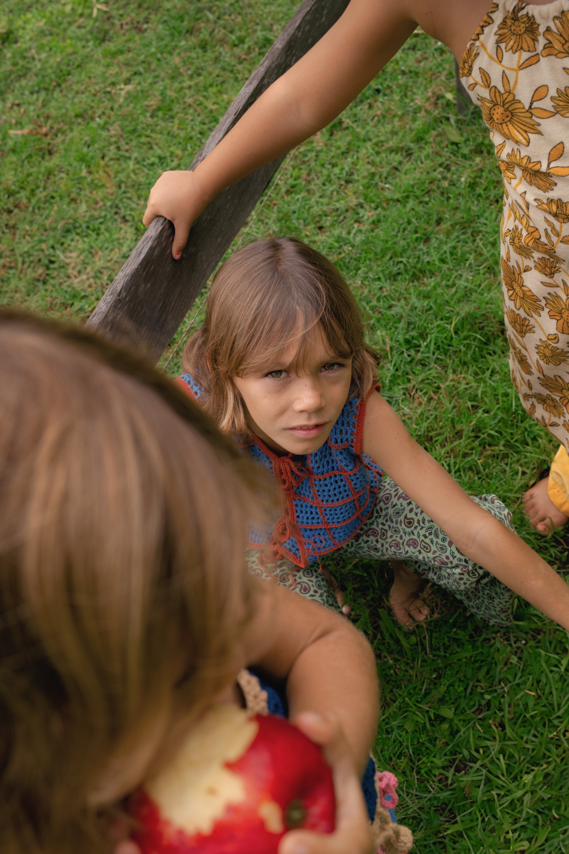 Hand-crocheted vest top with checkered pattern. Featuring adjustable tie-front detail, v-neckline, and contrast trim. Designed with the comfort and freedom of movement in mind, perfect for everyday wear.