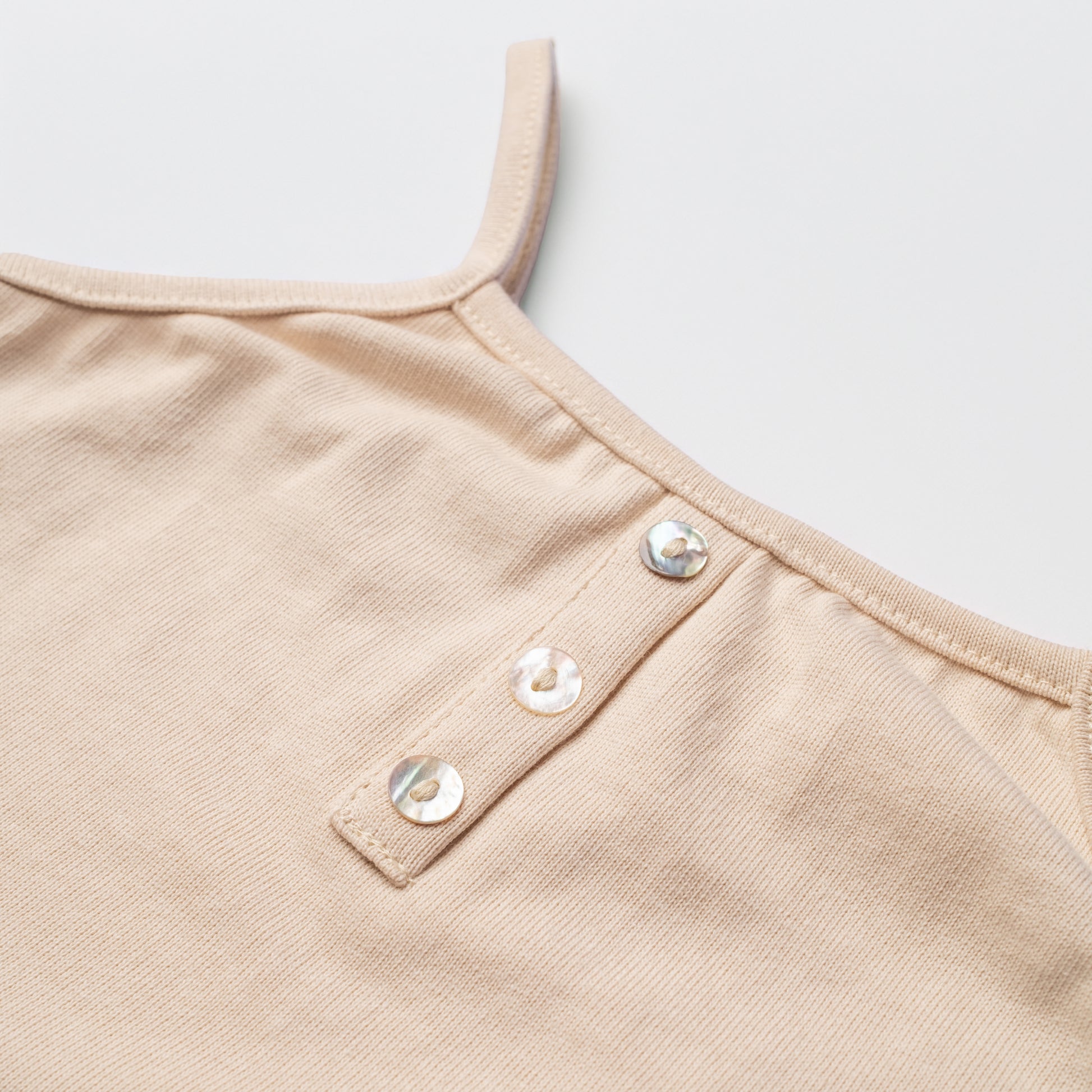 A soft cotton tank top made for sunny, carefree days, accented with charming shell buttons on the front for the perfect beach look.