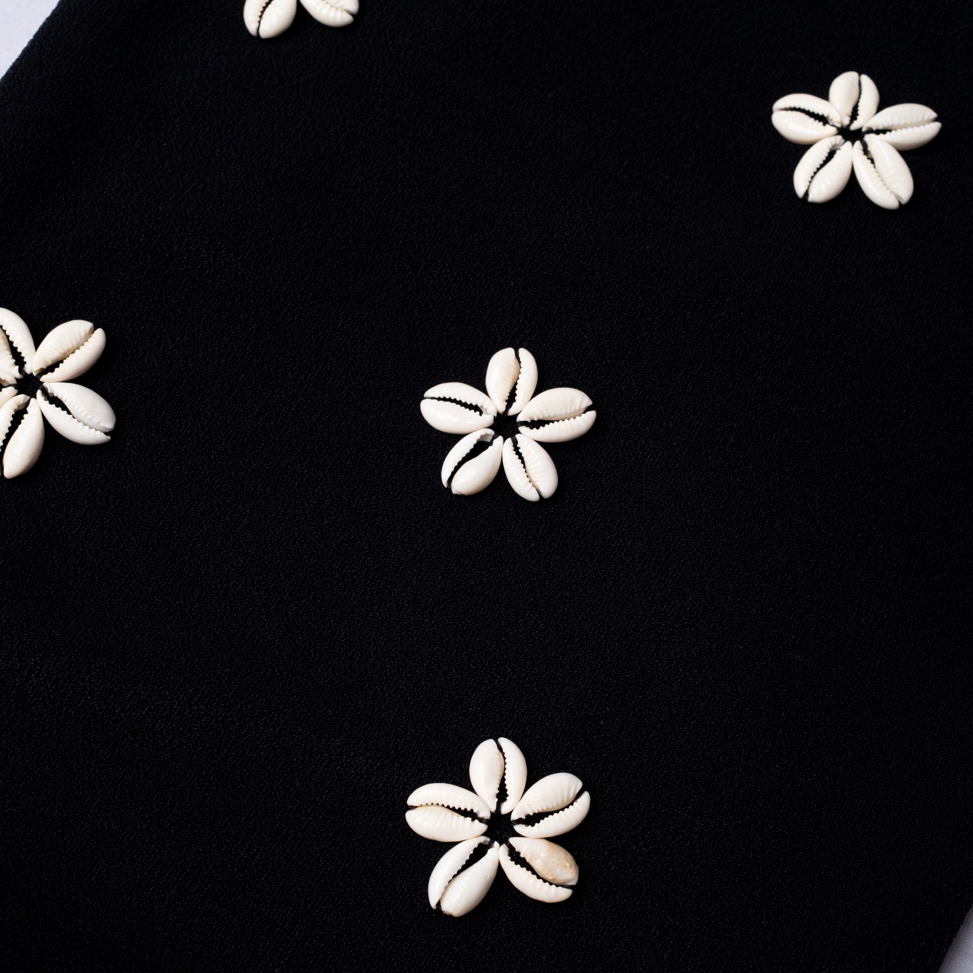 Swimsuit with cross back featuring pallenteria fabric from Econyl for a smooth, comfortable fit, with decorative shell flowers stiched on the front
