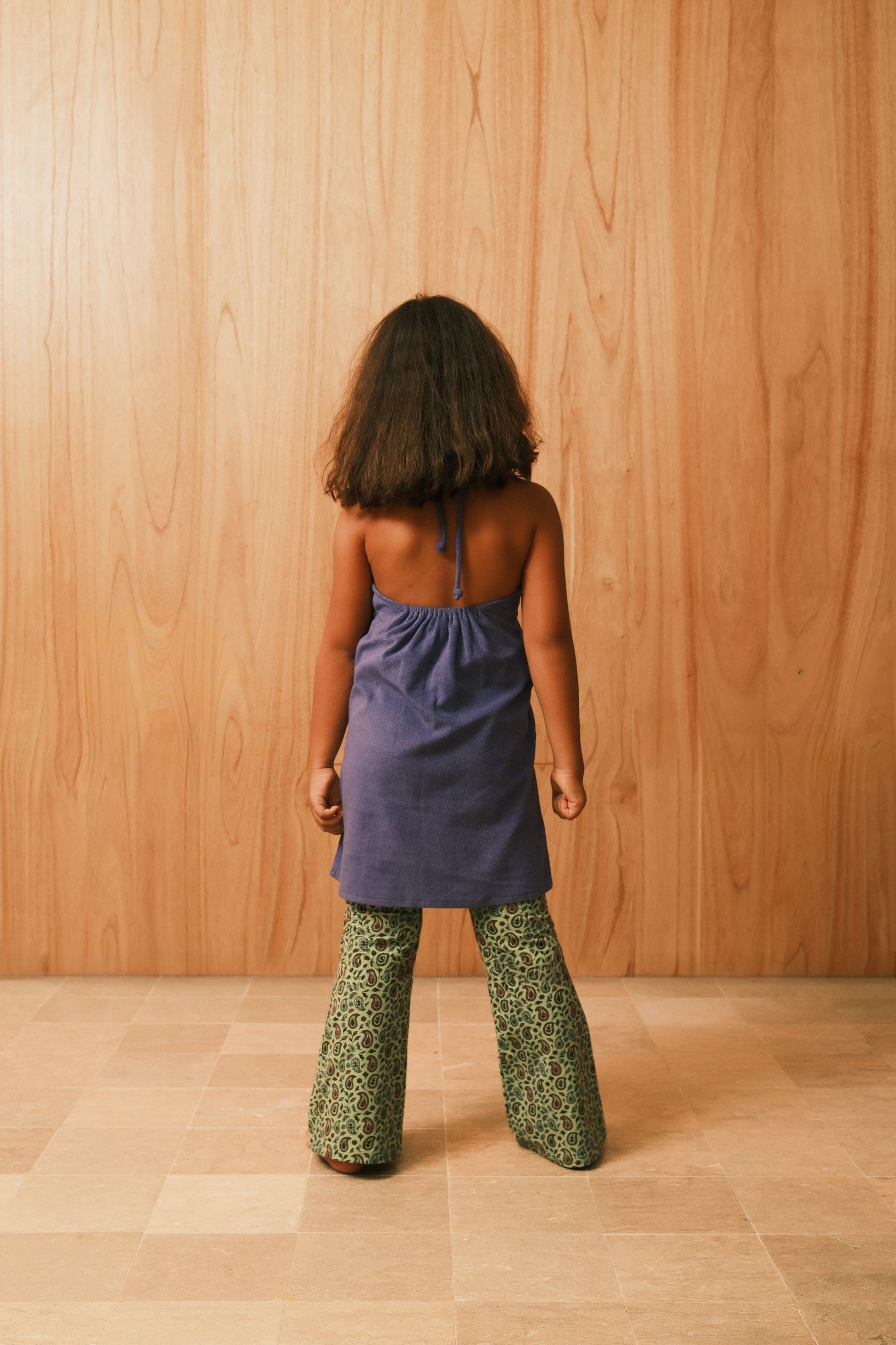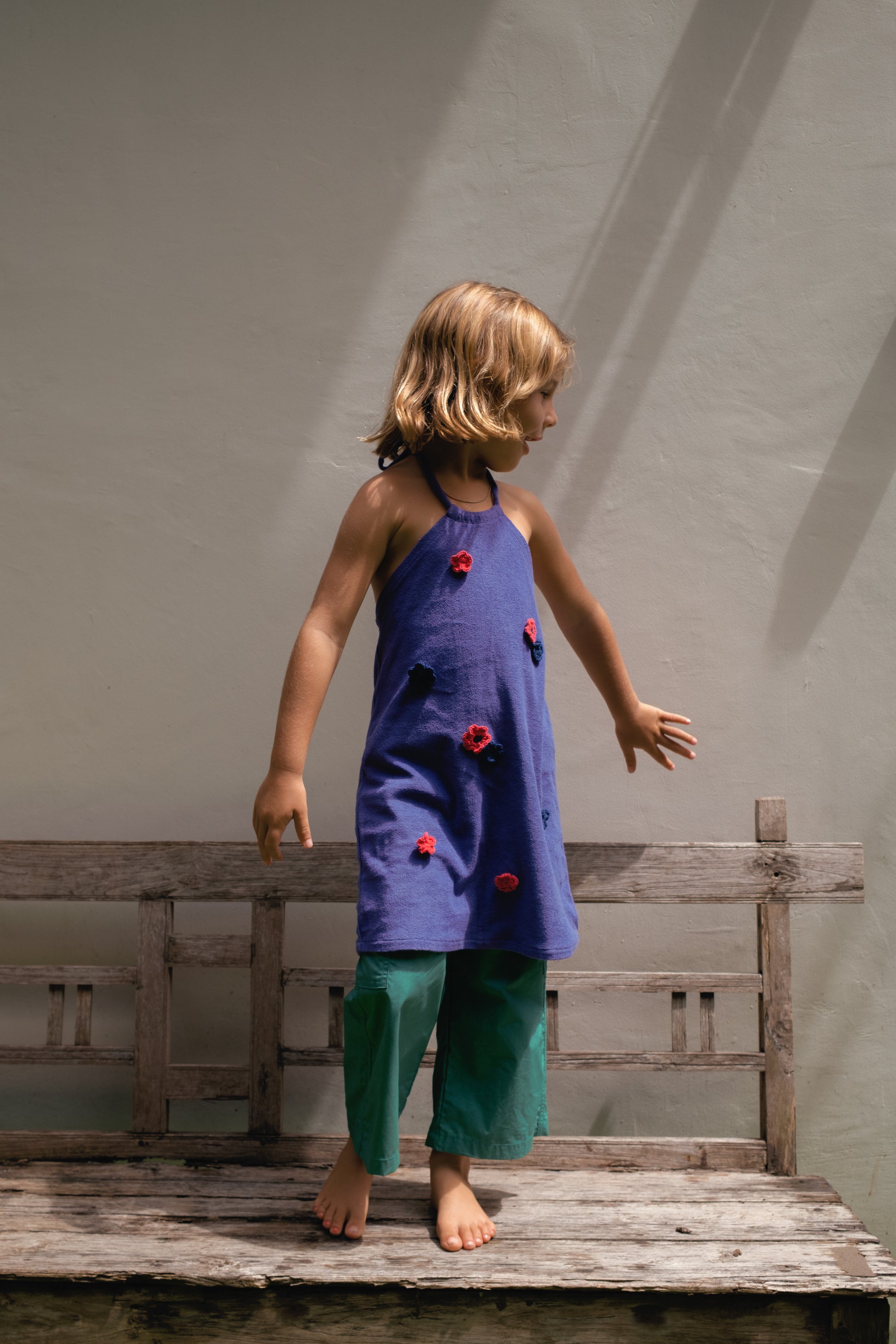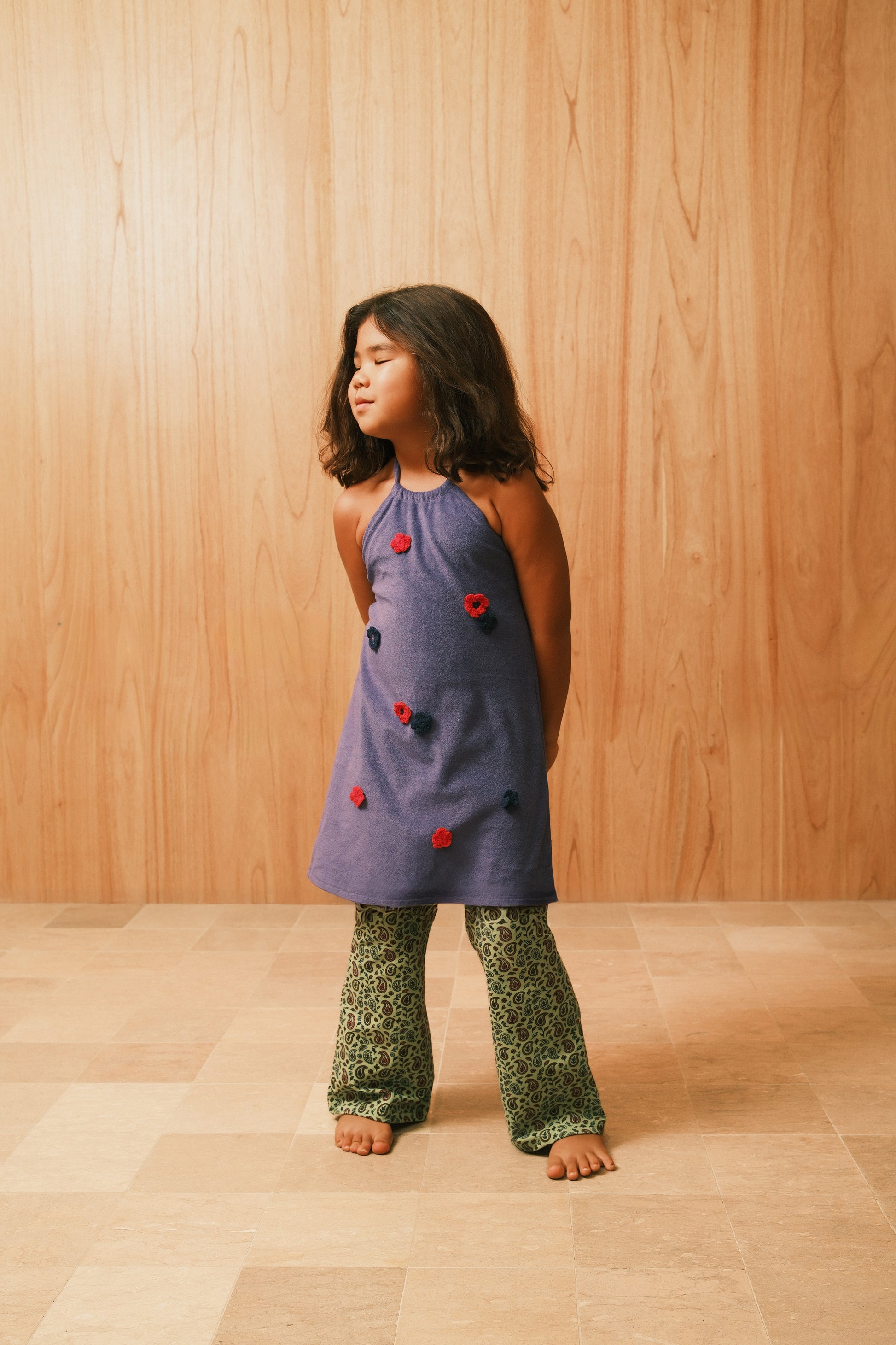 SUMMER PARTY HALTER TERRY FLOWER DRESS - PURPLE