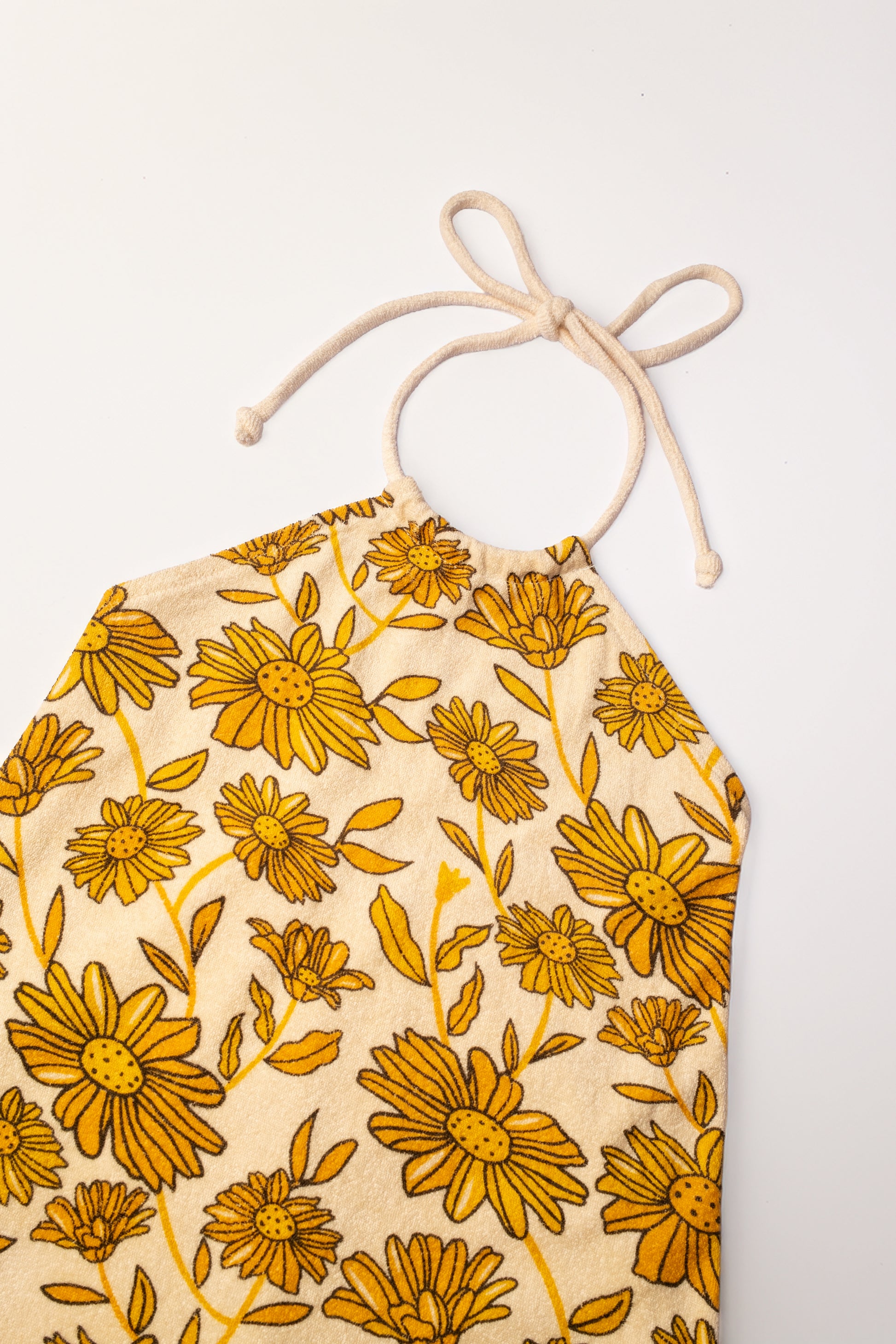 Halter terry dress with sunflower printed design